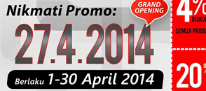 Come visit us now and get multiple discounts for your beloved car. Discount 27% for service, 4% for all products, 20% for balancing and spooring, Get 1 Wiper every 4L oil change. Valid throughout April 2014.